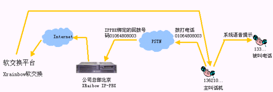 - 跨地域來(lái)電轉(zhuǎn)接,比如某個(gè)分支機(jī)構(gòu)的客戶撥叫該分支機(jī)構(gòu)電話,電話接起后,如果客戶需求沒有得到順利的答復(fù),在客戶電話保持的情況下,可以將電話轉(zhuǎn)接到在全國(guó)的任何一個(gè)IPPBX分機(jī)上。