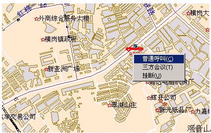 - 可視化指揮調(diào)度:在電子地圖上點擊相應(yīng)的圖標(biāo)即可撥打警力單位的固定電話以及向GPS巡邏車以及集群終端/公安分局/派出所/聯(lián)動單位電話號碼/手機號碼發(fā)起單呼和組呼;同時與接處警席配合使用,可以實現(xiàn)可視化指揮調(diào)度與非可視化指揮調(diào)度的全方位立體的混合指揮調(diào)度。