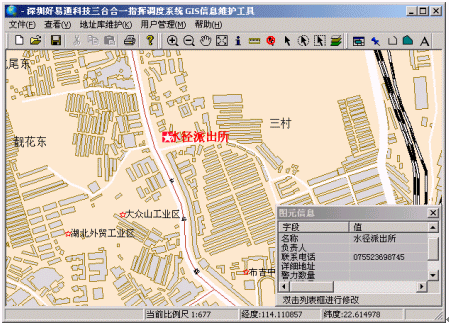 好易通三臺合一指揮調(diào)度警用地理信息子系統(tǒng)是好易通三臺合一指揮調(diào)度系統(tǒng)的一個重要組成部分,主要參考《警用地理信息系統(tǒng)建設(shè)規(guī)范》以及公安部《縣、市級公安機關(guān)"三臺合一"接處警系統(tǒng)技術(shù)規(guī)范》設(shè)計,基于MapInfo平臺開發(fā),接處警人員可運用該子系統(tǒng)對案發(fā)地點進(jìn)行多中定位(模糊定位、輔助定位),多種查詢及多種調(diào)度。