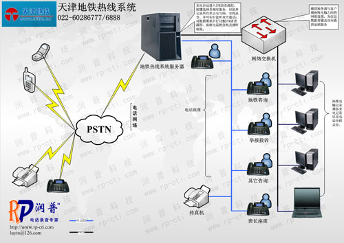 天津地鐵人深深的意識到,做為鐵路部門,調(diào)度意味著安全、更意味著責(zé)任。那么在鐵路調(diào)度工作中就必須將責(zé)任落實到底,明確個人工作職責(zé),這樣才能更大程度上減少事故的發(fā)生。這也就要求著有一套成熟的方案為其地鐵熱線服務(wù)。而這個熱線必須可以將所有電話錄音以備查詢,也可以根據(jù)電話統(tǒng)計出地鐵運營中出現(xiàn)的問題,以便解決。經(jīng)過北京多家公司的考查,天津地鐵選定潤普(http://www.rp-cti.com)為其熱線呼叫中心系統(tǒng)供應(yīng)商。
