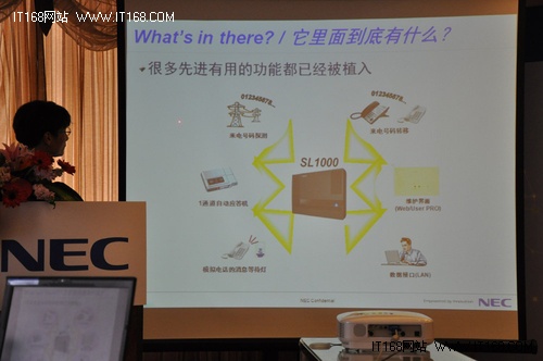 橋沢太一郎先生在發(fā)布會(huì)上表示,全新的SL1000注入了諸多先進(jìn)技術(shù)和NEC十幾年在亞洲市場上的經(jīng)驗(yàn)。它不是一個(gè)簡單的電話產(chǎn)品,而是一款卓越的通信服務(wù)器。NEC為它提供IP和遠(yuǎn)距離監(jiān)控功能,配合NEC的UC(統(tǒng)一通信)應(yīng)用程序能實(shí)現(xiàn)更加有效的工作方式。