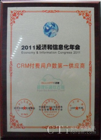 作為全球企業(yè)管理軟件領(lǐng)跑者,八百客參加了此次會(huì)議,并就IT業(yè)戰(zhàn)略性發(fā)展、工業(yè)轉(zhuǎn)型升級(jí)等問(wèn)題和與會(huì)企業(yè)家進(jìn)行了深入探討,集中、深刻闡釋產(chǎn)業(yè)精髓,洞悉和把握未來(lái)發(fā)展方向,尋求最佳的信息化成長(zhǎng)模式。年會(huì)期間的招待晚宴穿插各類(lèi)年度大獎(jiǎng)的頒獎(jiǎng)典禮,讓與會(huì)的政界、學(xué)界、商界等各路貴賓充分交流信息,建立友誼,為達(dá)成長(zhǎng)期合作奠定良好的基礎(chǔ)。基于八百客在國(guó)內(nèi)CRM領(lǐng)域的優(yōu)秀表現(xiàn),本次年會(huì)特別授予了八百客“CRM付費(fèi)用戶(hù)數(shù)第一供應(yīng)商”的大獎(jiǎng)。