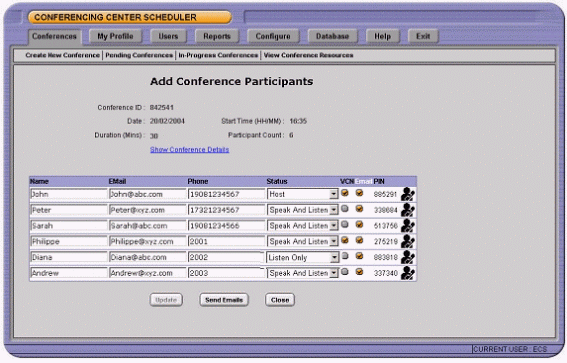 創(chuàng)建電話會議的用戶可以將與會人員的詳細(xì)資料如E-Mail和電話號碼添加到會議中。 這樣就可以在會議之前,用E-Mail通知所有與會人員會議的詳細(xì)內(nèi)容包括會議名稱,描述,會議ID和參加會議的PIN唯一識別碼