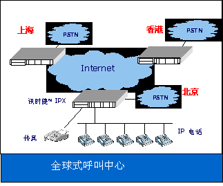 美國訊時(shí)捷™科技公司的“訊時(shí)捷™™ IPX”系統(tǒng)平臺(tái),可以作為分布式的IP呼叫中心,并可利用各地的網(wǎng)關(guān),提供低費(fèi)用的IP