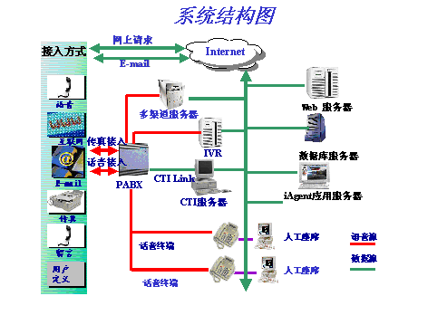 滿足呼叫中心多渠道接入的需求,使Internet呼叫中心成為現(xiàn)實(shí)。將網(wǎng)上ip電話請求納入傳統(tǒng)語音呼叫統(tǒng)一管理,無縫集成Email,傳真功能,實(shí)現(xiàn)網(wǎng)頁的互推瀏覽,文字交談,ip電話,網(wǎng)上資料發(fā)送等功能。
