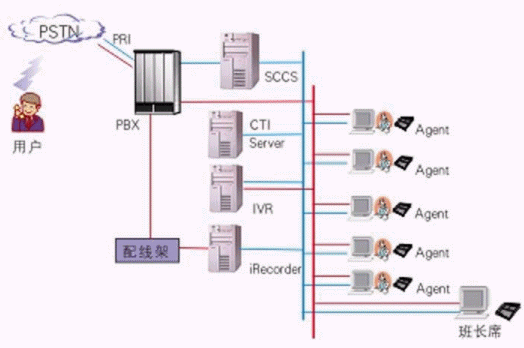 其中交換機(jī)采用Meridian,軟件平臺采用浩豐時代的系列解決方案:自動語音應(yīng)答系統(tǒng)IVR2000®,CTI平臺VOM®,坐席應(yīng)用系統(tǒng)iAgent®和數(shù)字錄音監(jiān)聽系統(tǒng)iRecorder?。該系統(tǒng)既可以利用強(qiáng)大的呼入排隊(duì)功能處理客戶請求,也可以利用呼出功能為客戶提供主動服務(wù)。