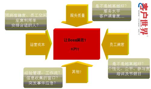 所以,我們認(rèn)為呼叫中心的運營解決方案,應(yīng)該綜合協(xié)調(diào)人力資源管理、話務(wù)預(yù)測、自動排班、績效考評、話務(wù)分析、現(xiàn)場管理、實時預(yù)警等各個現(xiàn)場管理要素。各個要素之間即是相互獨立,又相互關(guān)聯(lián)的,系統(tǒng)通過設(shè)置目標(biāo)值,達到管理目標(biāo)的均衡,這個平衡,從最核心的體現(xiàn)來看,就是一個完整的KPI體系中各個指標(biāo)的實現(xiàn)。