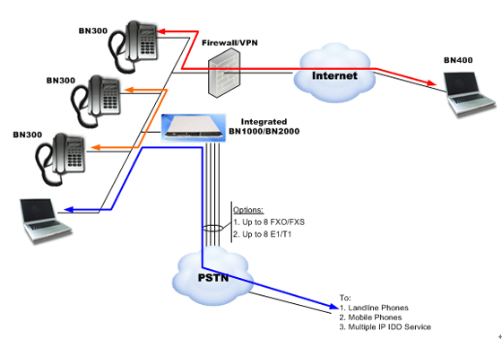 - BN2000 IP-PBX具有動(dòng)態(tài)路由選擇功能,支持用戶訂購多種IP國際長(zhǎng)途電話(IP IDD)服務(wù)。