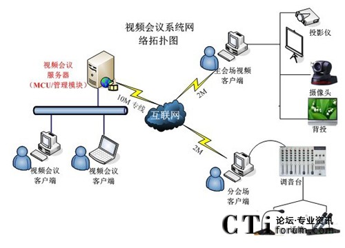 根據(jù)河南送變電建設(shè)公司的網(wǎng)絡(luò)現(xiàn)狀和現(xiàn)有的IT硬件資源以及各級各部門間的溝通協(xié)作需要,視維設(shè)計了一套可行的視頻會議系統(tǒng)解決方案,其網(wǎng)絡(luò)拓撲圖如下: