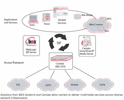 BEA提供領(lǐng)先的SOA基礎(chǔ)架構(gòu),同時它還提供可以在即使是完全不同的IT環(huán)境中建立應(yīng)用和管理SOA的強大的、 基于標準的平臺。BEA WebLogic Communications Platform (WebLogic 通信平臺)是第一個提供在運營商級環(huán)境中、全業(yè)務(wù)功能的融合IT和電信的平臺。它使得運營商可以通過加強利用固網(wǎng)和無線網(wǎng)開展多樣的數(shù)字內(nèi)容和視頻服務(wù)的能力,從而增加收入。其WebLogic SIP 服務(wù)器提供了必需的呼叫建立和會話管理,但是,運營商仍然需要高級的媒體處理能力,以及能夠與BEA 解決方案進行互操作的標準接口,從而使得運營商可以提供可擴展的語音、視頻和多媒體服務(wù)。他們同時需要有媒體網(wǎng)關(guān)以實現(xiàn)跨網(wǎng)絡(luò)的連接。Cantata與BEA Systems 合作,提供與BEA的WebLogic SIP服務(wù)器可靠的交互操作性,同時,運營商可以利用Cantata的SnowShore IP媒體服務(wù)器以及集成媒體網(wǎng)關(guān)1010實現(xiàn)跨固網(wǎng)和無線網(wǎng)語音和多媒體服務(wù)。