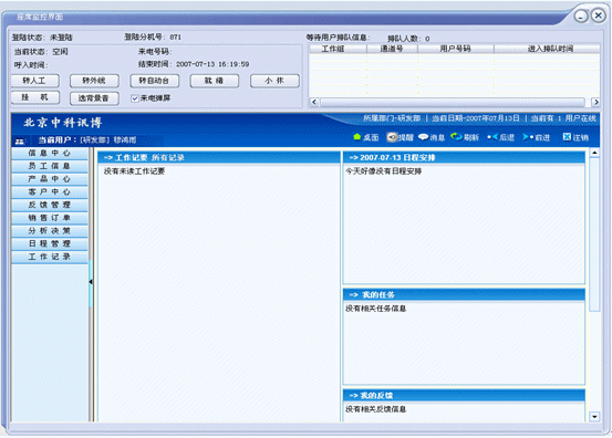 可同時(shí)顯示多個(gè)來(lái)電號(hào)碼,所有來(lái)電信息一目了然, 話務(wù)員可選擇接聽任意一部電話,也可自由設(shè)置來(lái)電的排隊(duì)優(yōu)先級(jí)別,對(duì)正在接聽的電話可以選擇轉(zhuǎn)到自動(dòng)臺(tái)服務(wù)或轉(zhuǎn)其他分機(jī)服務(wù),極大的提高了個(gè)性化分級(jí)服務(wù)功能