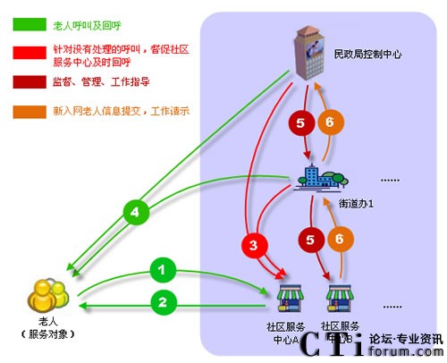 社區(qū)呼叫平臺包含:老人、民政局、街道辦、社區(qū)服務(wù)中心四個業(yè)務(wù)角色,民政局、街道辦、社區(qū)服務(wù)中心通過專用網(wǎng)絡(luò)建立高效聯(lián)動機制。