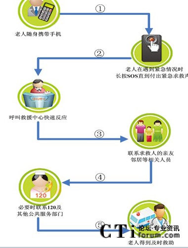 老人使用不記任何電話(huà)號(hào),按下紅鍵(盲人按粗糙鍵)就可發(fā)送緊急求救信號(hào);按下綠鍵可以發(fā)送求助信號(hào),求助信息根據(jù)用戶(hù)需要在同一時(shí)間發(fā)送到信息服務(wù)中心、社區(qū)網(wǎng)格管理員、老人指定親屬、物業(yè)公司、及有關(guān)部門(mén),可實(shí)現(xiàn)完整信息獲取和快速響應(yīng),啟動(dòng)多方通話(huà)進(jìn)行緊急調(diào)度,保障老人的生命財(cái)產(chǎn)安全。