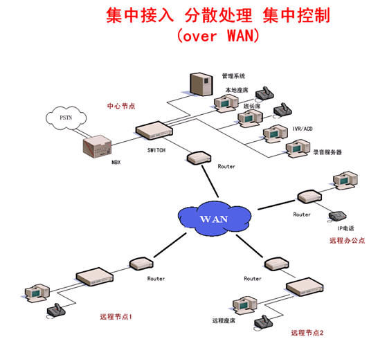 隨著用戶分支機(jī)構(gòu)的不斷發(fā)展壯大,建立一套完全基于IP網(wǎng)絡(luò)的分布式的呼叫中心系統(tǒng),正成為企業(yè)全面提升自身客戶服務(wù)質(zhì)量的一條重要途徑。在前幾年的呼叫中心建設(shè)熱潮過后,現(xiàn)在的市場(chǎng)越來越趨向于理性,目前的企業(yè)往往都處在轉(zhuǎn)變之中,如何最大限度地利用現(xiàn)有的網(wǎng)絡(luò)資源和已有的設(shè)備資源,如何以最低的投資成本獲得最有效的客戶服務(wù)手段才是企業(yè)的選擇根本。企業(yè)的需求決定了呼叫中心行業(yè)的發(fā)展方向,網(wǎng)絡(luò)化、分布化、經(jīng)濟(jì)化、完全基于IP的華為-3Com NBX呼叫中心平臺(tái)越來越受到企業(yè)的歡迎,已經(jīng)成為企業(yè)構(gòu)建IP分布式客戶服務(wù)系統(tǒng)的首選品牌。基于網(wǎng)絡(luò)化的NBX呼叫中心: