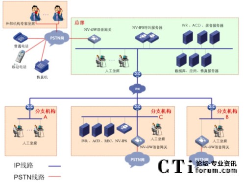 總部部署呼叫中心,NV-IPS呼叫中心平臺采用純IP部署方式,可根據(jù)用戶的實際環(huán)境,靈活部署,各設(shè)備模塊不受地理位置的限制,降低整體平臺的部署成本。