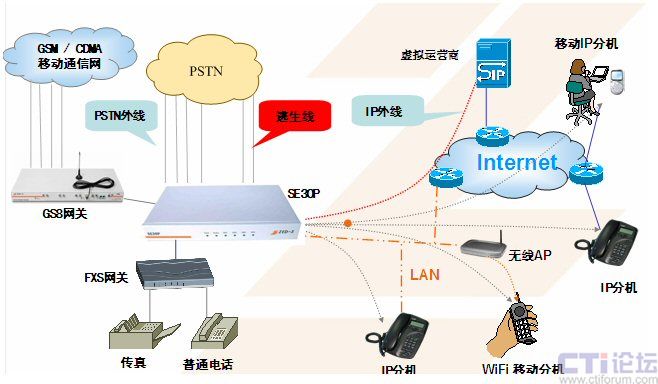 Trunk號、內部小號),實現(xiàn)多路由選擇;支持PSTN外部用戶,如與GS8移動模塊網(wǎng)關配合使用,還可實現(xiàn)移動的中繼服務,解決中繼不足問題,且有一號通等功能;擁有逃生功能,解決緊急狀況的通信問題。虛擬辦公室的概念,為客戶提供更自由的辦公通信手段。采用WEB管理方式,使用便捷,維護簡單。