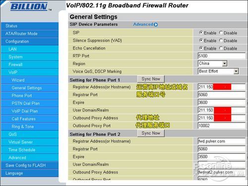 把申請得到的相關數(shù)據(jù)填入BiPAC 6404VGP中,在路由器后面接上電話就可以享受完全免費或超低價格的電話服務了。同一個SIP服務器下面的用戶互相撥打電話、收發(fā)傳真是免費的。