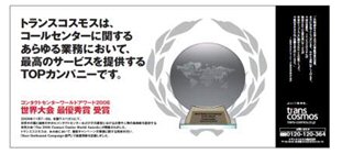 引進(jìn)國際領(lǐng)先的MO3(獲得2006 “Contact Center World Award” 最優(yōu)秀獎(jiǎng))呼出技術(shù):MO3是母公司transcosmos獨(dú)力研發(fā)的呼出服務(wù)體系。通過對數(shù)據(jù)的充分分析和挖掘,以“顧客行動(dòng)模式”為基礎(chǔ),預(yù)測“哪個(gè)顧客、哪個(gè)坐席、在哪個(gè)時(shí)間點(diǎn)、提供什么樣的服務(wù)、進(jìn)行怎樣的進(jìn)一步接觸”,以及精確計(jì)算是否收到最大投資和成效比(ROI),實(shí)行最有效的和顧客接觸的運(yùn)營。