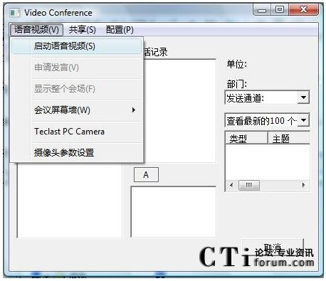 客戶端登錄以后,選擇一臺配置好的電腦發(fā)起視頻會議,雙擊組集合下面的組,在打開的對話框中,點擊[語音視頻]/[啟動語音視頻]: