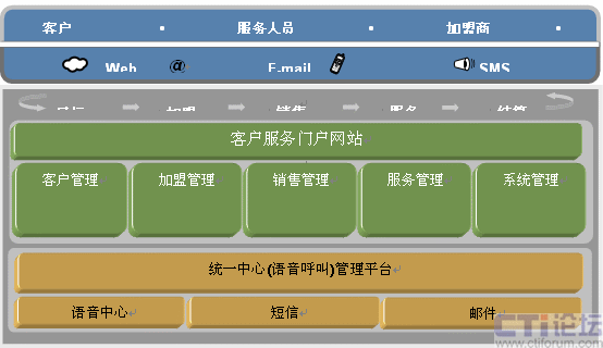- 在統(tǒng)一通訊服務(wù)平臺上,構(gòu)建以電話、短信、郵件為服務(wù)方式的客戶管理系統(tǒng)