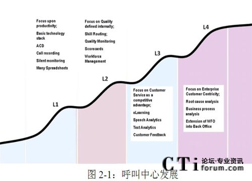 在現(xiàn)實中,還存在零程度的呼叫中心,這一點并沒有體現(xiàn)在呼叫中心發(fā)展路線圖上。零程度的呼叫中心就是那些在運(yùn)營過程中并沒有很好地認(rèn)識到自己角色以及對自己未來的發(fā)展毫無計劃的呼叫中心。