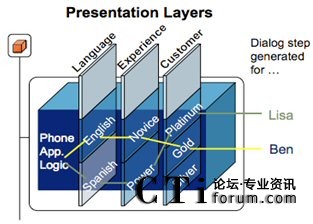 而統(tǒng)一部署特性則在語音和移動互聯(lián)網(wǎng)兩種訪問渠道上保證了這種操作界面的一致,如圖:
