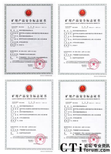CTI論壇(ctiforum)6月15日消息(記者 楊佳林):震有科技順利通過安標國家礦用產(chǎn)品安全標志中心頒發(fā)礦用無線通信系統(tǒng)、礦用本安型無線基站、礦用本安型手機S1、礦用本安型手機S2的四項礦用產(chǎn)品安全標志證書,這標志著震有科技KT202礦用融合通信系統(tǒng)獲得煤礦安全領域的通行證,為公司大力拓展煤礦能源市場奠定了堅實有利的基礎。