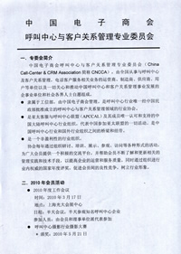 中國(guó)電子商會(huì)呼叫中心與客戶關(guān)系管理專(zhuān)業(yè)委員會(huì)(China Call-Center & CRM Association簡(jiǎn)稱(chēng)CNCCA),由全國(guó)從事與呼叫中心及客戶關(guān)系管理,電話客戶服務(wù)相關(guān)業(yè)務(wù)的運(yùn)營(yíng)商、制造商、供應(yīng)商、用戶等單位以及一切關(guān)心和推動(dòng)中國(guó)呼叫中心和客戶關(guān)系管理事業(yè)發(fā)展的企事業(yè)單位和社會(huì)各界人士自愿組成。