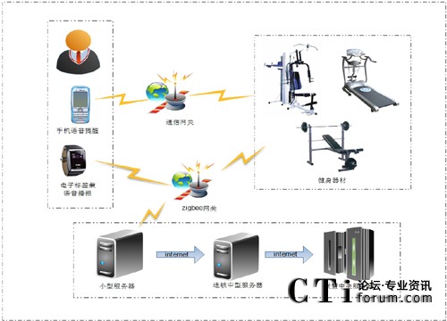基于物聯(lián)網(wǎng)的綜合信息管理健身系統(tǒng),以下簡稱物聯(lián)網(wǎng)健身系統(tǒng)----IOT Fitness system(IOTFS),本系統(tǒng)是將物聯(lián)網(wǎng)技術(shù)(ZIGBEE、GPRS等傳輸方式)以及語音合成技術(shù)(TTS)的應(yīng)用集成于一體。技術(shù)方案主要利用無線通訊技術(shù)、射頻技術(shù)、電子技術(shù)、計算機(jī)技術(shù)、信息網(wǎng)絡(luò)技術(shù)、傳感技術(shù)等高科技術(shù)的設(shè)備和軟件所組成,以構(gòu)建完善的客戶健身服務(wù)系統(tǒng)和健身房運營系統(tǒng)相結(jié)合的統(tǒng)一的信息管理健身系統(tǒng)。