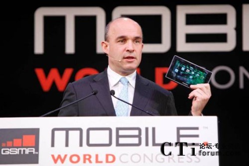 圖1:RIM公司聯(lián)合首席執(zhí)行官Jim Balsillie在MWC發(fā)表主題演講