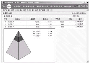 客戶價(jià)值金字塔通過設(shè)定全方位、多角度的客戶價(jià)值指標(biāo),對(duì)企業(yè)現(xiàn)有的客戶和潛在的客戶進(jìn)行可量化的價(jià)值評(píng)估,并將評(píng)估結(jié)果展現(xiàn)為可視化的“金字塔”型分層客戶價(jià)值圖。利用這種直觀的客戶價(jià)值展現(xiàn),企業(yè)管理者可以有效地將精力集中在最有價(jià)值或最有發(fā)展?jié)摿Φ目蛻羯,及時(shí)發(fā)現(xiàn)價(jià)值下降的客戶,有效地提升企業(yè)的競(jìng)爭(zhēng)力。