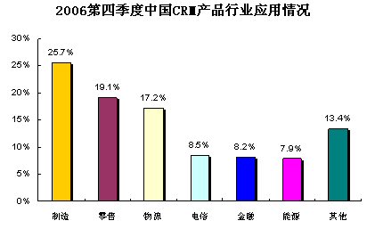 4月23日 易觀國際研究表明,中國CRM產(chǎn)品市場2006年第4季度總體市場規(guī)模達到0.81億人民幣,季度增長率達到4.2%,體現(xiàn)了穩(wěn)健增長的趨勢。具體廠商方面,TurboCRM,Oracle(甲骨文),SAP位居領(lǐng)先地位。