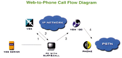 VocalTec公司的網上呼叫(Surf&Call)網絡客戶軟件5.0(Web Client5.0),可提供語音增值電子商務服務以及通過IP網的網絡到電話呼叫業(yè)務。Surf&Call是一種面向基于互聯(lián)網電信應用的獨特網絡軟件,可通過互聯(lián)網使任何網站與普通電話實現(xiàn)語音連接,是VocalTec整體架構的一部分。Surf&Call為網頁提供一個按鈕,上網者單擊該按鈕,就可與座席通話。在大多數瀏覽器環(huán)境下,在瀏覽需要利用Surf&Call軟件的頁面時,Surf&Call可自動下載和安裝。
