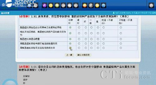 astercc的CATI問卷系統(tǒng)將問題自動彈出在坐席人員的電腦屏幕前,坐席按照系統(tǒng)提示逐步操作即可,無需復(fù)雜的專業(yè)知識,按照系統(tǒng)彈出的資料傳達給客戶,供客戶進行勾選。(坐席可以利用Tab鍵來自動切換下一題,方便坐席操作,節(jié)省時間)