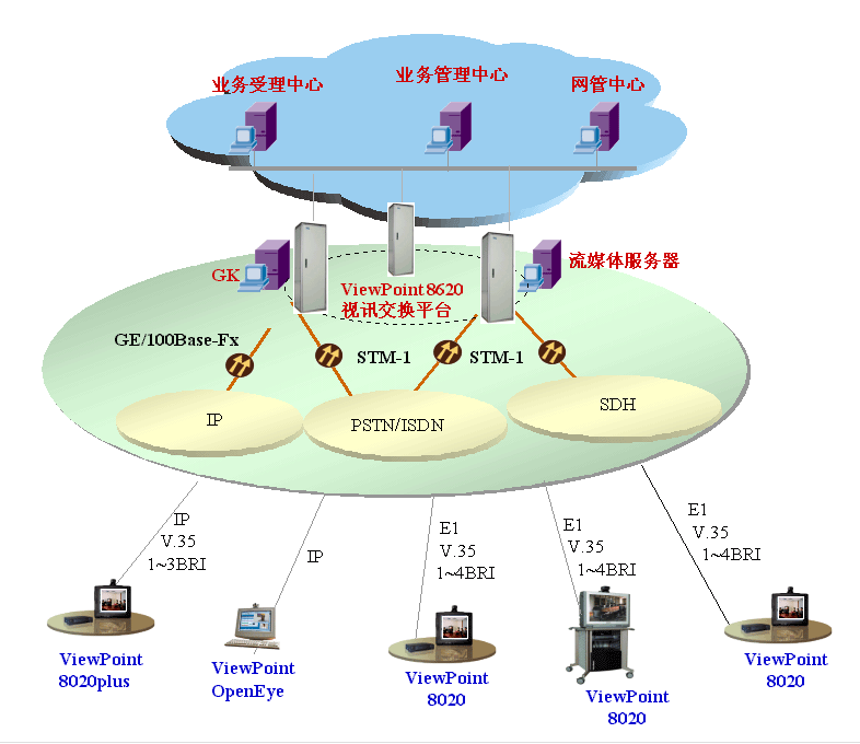 面對公眾視訊業(yè)務發(fā)展的契機,由于基于窄帶H.320的視訊系統(tǒng)較為成熟,而基于IP網(wǎng)的H.323系統(tǒng)被普遍看好,ISDN目前是最方便的公眾視訊系統(tǒng)接入手段,相對于其他接入方式(如E1、DDN、FR、ATM、IP等)使用方便,可方便通過撥號方式與任何聯(lián)網(wǎng)地區(qū)建立會議。ViewPoint 8620視訊交換平臺采用寬窄帶一體化設(shè)計,可為各行各業(yè)用戶提供完備的一體化解決方案,不僅能提供大容量ISDN用戶撥號接入,還能提供大容量的E1/V.35/IP方式接入。公眾視訊業(yè)務的發(fā)展,將視訊業(yè)務從單純?yōu)樯贁?shù)特定用戶群提供遠程會議服務,轉(zhuǎn)而面向公眾,為各行各業(yè)提供視訊業(yè)務。
