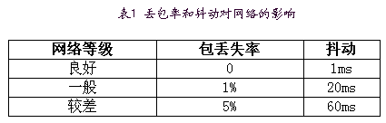 一般根據(jù)丟包率和抖動(dòng)將網(wǎng)絡(luò)分為三級(jí),見(jiàn)表1。