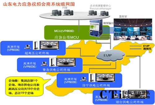 山東電力集團公司為了開展應急視頻會商業(yè)務,需建設一套覆蓋集團總部、地市供電公司、超高壓公司等19個單位的視訊系統(tǒng),并能夠與國家電網(wǎng)、地市供電公司已有系統(tǒng)實現(xiàn)音、視頻的互通。