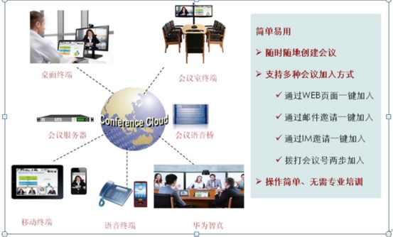 華為eSpace協(xié)同會議解決方案從企業(yè)對日常協(xié)作整體需求的角度出發(fā),建立了一個包含會議服務(wù)器、會議室視頻終端、會議用戶授權(quán)、電話會議等產(chǎn)品融合的綜合解決方案,讓企業(yè)客戶在任何區(qū)域、任何時間使用任何終端獲取良好的會議體驗,全面提升企業(yè)的遠程溝通協(xié)作水平。通過部署華為eSpace協(xié)同會議解決方案,企業(yè)可以避免溝通不暢、信息滯留帶來的損失以及對市場響應(yīng)速度的影響,從而降低企業(yè)的管理和溝通成本,提高企業(yè)的工作效率,為企業(yè)打造核心競爭力。