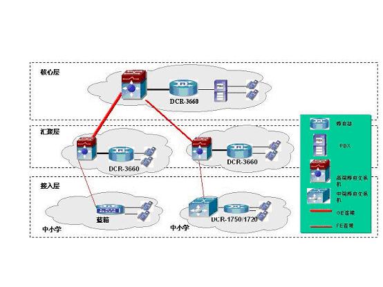同時,DCR-3660、DCR-2600系列路由器為增強教育城域網(wǎng)VoIP管理,提供內置H.323網(wǎng)守功能,可以在區(qū)縣教委提供免費本地網(wǎng)守,減輕市教委網(wǎng)守的壓力。