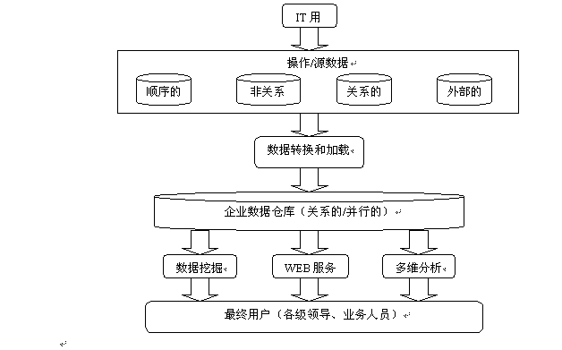 數(shù)據(jù)倉庫是信息技術(shù)領(lǐng)域的新概念,是近幾年來迅速發(fā)展起來的一種信息存儲及管理技術(shù)。它存儲各種大量的、決策分析所需要的、歷史的、分散的數(shù)據(jù),經(jīng)過處理將這些數(shù)據(jù)轉(zhuǎn)換成集中統(tǒng)一、隨時可用的信息。它能方便地提供隨機查詢和各種分析處理,它具有在任何時間、就任何業(yè)務(wù)、回答任何問題的能力;利用數(shù)據(jù)倉庫前端的數(shù)據(jù)挖掘工具和人工智能算法建立各種調(diào)查、分析和預測模型。