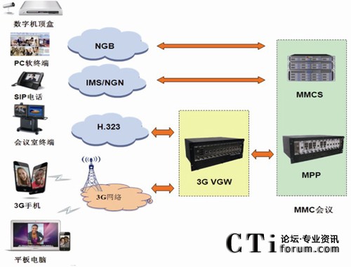 鑒于傳統(tǒng)視頻會議只能在固定地點、專用線路,通過專用設(shè)備召開語音和視頻會議的局限性。3G移動視頻會議解決方案實現(xiàn)了將會議拓展到整個互聯(lián)網(wǎng)和移動網(wǎng)絡(luò),用戶隨時隨地可以使用3G手機(jī)和PC,通過互聯(lián)網(wǎng)、移動網(wǎng)絡(luò)即可便捷地接入到現(xiàn)有會議系統(tǒng)中,真正實現(xiàn)跨越地域、空間的全方位會議。