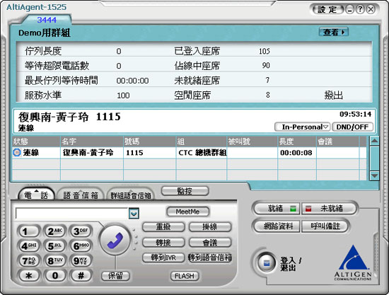 圖:AltiGen電話進(jìn)線后的主畫面,即有轉(zhuǎn)接、多方會議、保留等功能鍵,達(dá)到全方位通訊。