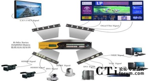 Kensence H-Mix系列產(chǎn)品專門為解決在視頻工程中遇到的諸多問題而設(shè)計,將數(shù)字視頻信號、模擬視頻信號、高清視頻信號和標(biāo)清視頻信號混為一體處理成高清720p@60Hz或1080p@60Hz信號的HDMI的高清數(shù)字信號通過網(wǎng)絡(luò)傳輸?shù)囊豢疃嗝襟w混合矩陣。Kensence H-Mix采用Silicon Image HDMI v1.3芯片,支持HDMI\DVI\3GSDI\HDSDI\SDI\VGA\YPbPr\CVBS信號的輸入和HDMI\DVI\CAT-5\光纖信號的輸出,可將VESA\CEA\HDTV各種不同分辨率的信號轉(zhuǎn)換為HDTV的高清視頻分辨率,并且可以通過普通五類雙絞線或多模光線進(jìn)行高清視頻的傳輸。Kensence H-Mix可以通過網(wǎng)絡(luò)、RS232、IR、軟件、前面板對系統(tǒng)進(jìn)行控制管理,采用插卡式設(shè)計可以任意進(jìn)行系統(tǒng)組合,方便靈活。模塊化雙電源冗余熱備份功能可以實現(xiàn)7日24小時連續(xù)開機(jī),保證系統(tǒng)安全可靠工作。
