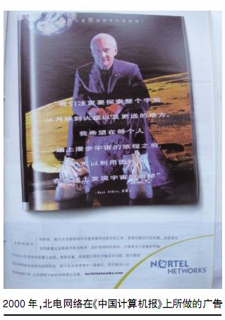 2000年,北電網(wǎng)絡(luò)在《中國計算機報》上所做的廣告 1995年,北電開始從電話制造公司向網(wǎng)絡(luò)設(shè)計、構(gòu)建及集成公司的演變。起初,業(yè)界分析人士對此予以奚落,認(rèn)為這是一家電信商膚淺的裝飾門面之舉。一位分析師曾尖銳地稱之為“一群四十多歲的人穿著跳迪斯科的衣服”。