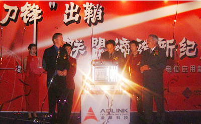 2002年9月19日,凌華科技于北京長城飯店舉辦“刀鋒出鞘、聯(lián)盟締造新紀元” 新聞發(fā)布會,記者會中凌華科技除宣布與國際電信設(shè)備知名廠商Interphase、Performance Technologies策略聯(lián)盟外,凌華亦發(fā)表全世界速度最快的PICMG2.16電信級刀鋒服務(wù)器,透過相互的搭配合作,將針對客戶提供電信暨網(wǎng)絡(luò)應(yīng)用領(lǐng)域之完整解決方案。凌華科技董事長劉鈞先生、Interphase區(qū)域負責(zé)人Mr. Antony Chapman、Performance Technologies行銷業(yè)務(wù)副總Mr. Martin McFadden、中國工控領(lǐng)域?qū)<彝瑫r亦是PICMG中國協(xié)會會長魏慶福教授、以及北京郵電大學(xué)宋俊德教授皆共襄盛舉,出席此次成功的記者發(fā)布會。