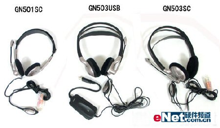 看了GN503USB以后,下面我們看看GN503SC。它的外觀和GN501SC類似,不同之處在于:GN503SC的頭夾采用自適應式,不用像GN501SC那樣,需要根據(jù)使用者的頭型手動調(diào)節(jié)吊臂的高度。