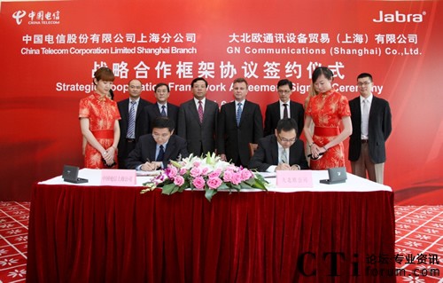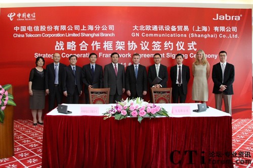 CTI論壇(ctiforum)6月23日消息(記者 楊佳林):上!蝾I(lǐng)先的創(chuàng)新耳麥解決方案提供商大北歐公司(GN Netcom)與中國電信上海公司(以下簡稱上海電信)今日隆重舉辦了 “戰(zhàn)略合作框架協(xié)議簽約儀式”。上海電信資深經(jīng)理花銳強、大北歐公司亞太區(qū)總裁Mark Leigh,及雙方公司高層領(lǐng)導(dǎo)共同出席了此次慶典。Mark Leigh先生還代表了大北歐公司將Edouard Suenson先生——“將電報引入中國的丹麥人”的雕像捐贈給上海電信博物館,見證了中國與丹麥源于19世紀末在通信方面的成功合作。