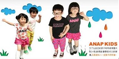 除了衣服質(zhì)感舒適,ANAP KIDS以款式流行、設(shè)計CUTE的市場定位也贏得 不少青睞者的追捧。更有小物件、配飾等多類商品,滿足了喜歡時尚、裝扮的母親們想讓自己孩子穿得和其他人與眾不同衣服的需求。繼承了ANAP傳統(tǒng)的ANAP KIDS是一個非!氨挤拧薄ⅰ俺錆M活力”的品牌,致力于協(xié)助父母給予最可愛的他(她)最安全、最舒適的呵護,將潮流、關(guān)愛、成長的生活觀念傳遞到每個家庭,讓所有3-6歲兒童共享同一份快樂。