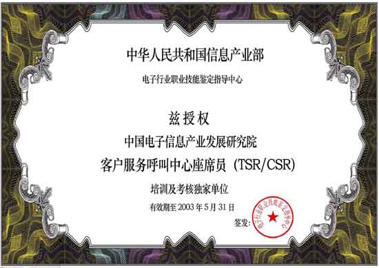 中國電子信息產(chǎn)業(yè)發(fā)展研究院職業(yè)技能培訓(xùn)部是中國電子信息產(chǎn)業(yè)發(fā)展研究院旗下專業(yè)從事IT職業(yè)技能培訓(xùn)的機構(gòu)。呼叫中心職業(yè)技能培訓(xùn)工作是培訓(xùn)中心常年開展的主要培訓(xùn)項目。培訓(xùn)中心受信息產(chǎn)業(yè)部委托,負責(zé)全國范圍內(nèi)"呼叫中心客戶服務(wù)座席員"的授權(quán)培訓(xùn)及考核工作。既是呼叫中心行業(yè)基礎(chǔ)操作人員培訓(xùn)及考核的權(quán)威機構(gòu),又是配合行業(yè)管理、全面支撐和提升整個呼叫中心產(chǎn)業(yè)的服務(wù)機構(gòu)。