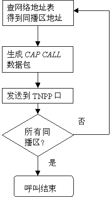 本地呼叫登記了同播功能的本地機時, 自動臺通過PCM數(shù)字中繼, 從MFC信號中取到BP機號及主叫電話號碼, 或從用戶DTMF撥號中得到信息碼,形成發(fā)呼串送到發(fā)呼工作站,由發(fā)呼工作站根據(jù)同播區(qū)號,往所有的自動臺發(fā)CAP CALL,后面的呼叫過程就由同播地自動臺來完成。同播區(qū)可以為包括本地區(qū)的多個區(qū)。下圖中TNPP口可以為本地TNPP端口或聯(lián)網TNPP端口。